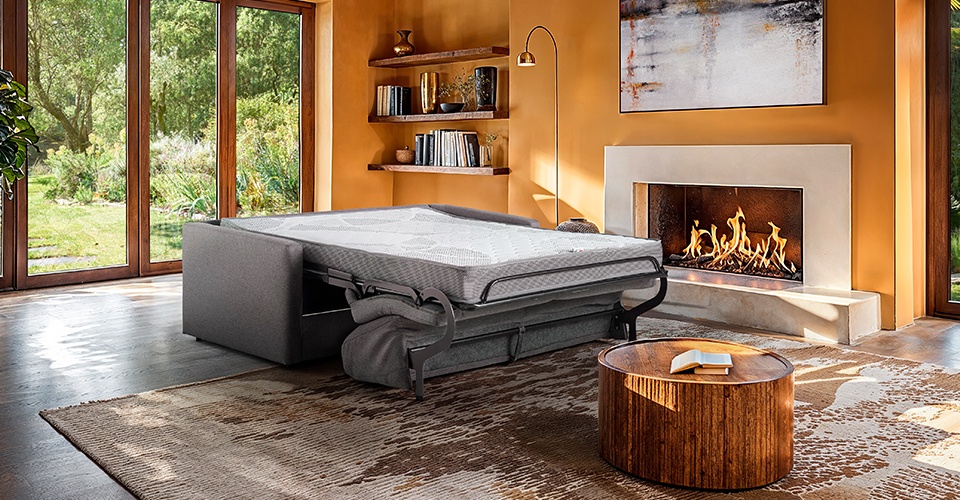 Dans un salon avec cheminée, l'ajout d'un canapé convertible peut facilement encombrer l'espace. Équilibrer fonctionnalité et style est la clé d'un aménagement réussi. Voici quelques conseils d'aménagement pour profiter de la chaleur et de l'esthétique que procure une cheminée.